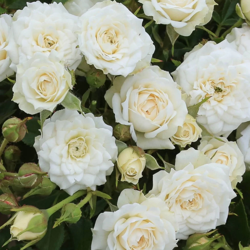 Роза Полиянта Айсберг прави гъст компактен храст, който се покрива с нежни бели цветове и придава усещане за спокойствие и подреденост.